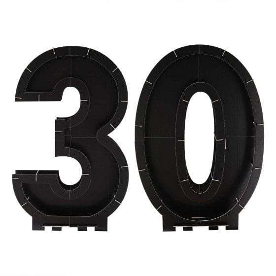 Champagne Noir Black 30th Balloon Mosaic Frame Decoration Each pack contains: 1 x Balloon Number Frame: Number 3 Stand measures 81cm (H) x 53cm (W) and Number 0 Stand measures 83cm (H) x 57cm (W).