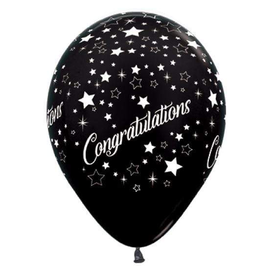 Sempertex 30cm Congratulations Stars Metallic Black Latex Balloons, 6PK, Latex Balloon. 90% biodegradable within 2 years., 30cm when inflated, 6 Pack