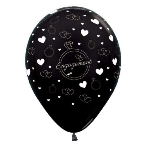 Sempertex 30cm Engagement Diamond Rings & Hearts Metallic Black Latex Balloons, 6PK, Latex Balloon. 90% biodegradable within 2 years., 30cm when inflated, 6 Pack