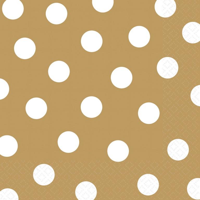 Dots Lunch Napkins Gold, 33cm x 33cm , Paper, 16 Pack