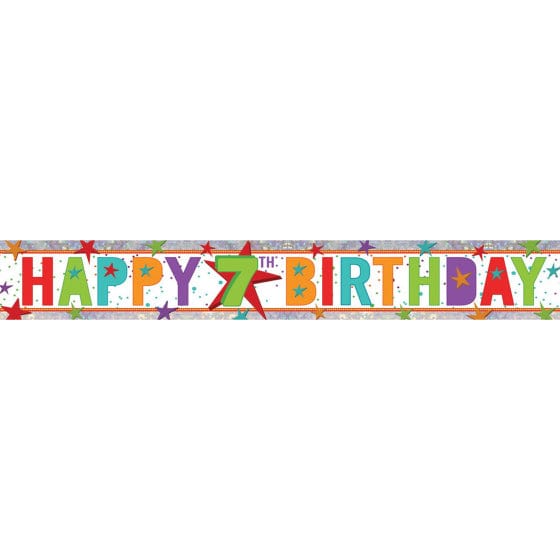 Happy 7th Birthday Multi-Coloured Holographic Banner 2.7m Each
