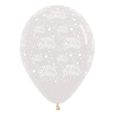 Sempertex 30cm Happy Birthday Stars Crystal Clear Latex Balloons, 25PK, Latex Balloon. 90% biodegradable within 2 years., 30cm when inflated, 25 Pack