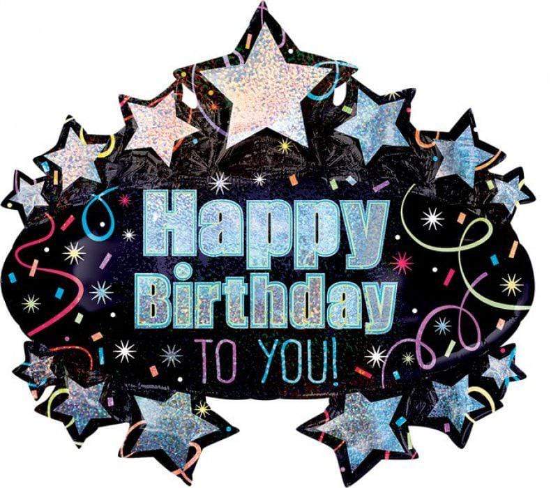 SuperShape Holographic Happy Birthday To You Brilliant Marquee P50, 78cm x 71cm , Self Sealing Foil Balloon, Self Sealing Foil Balloon