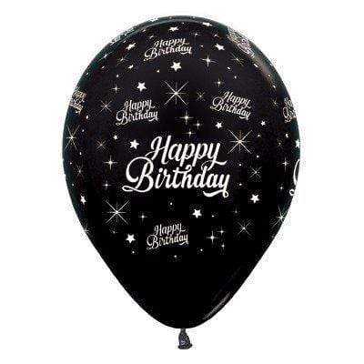 Sempertex 30cm Happy Birthday Twinkling Stars Metallic Black Latex Balloons, 25PK, Latex Balloon. 90% biodegradable within 2 years., 30cm when inflated, 25 Pack