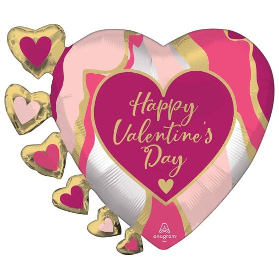 Happy Valentine's Day Abstract Marble SuperShape Foil Balloon 60cm x 50cm Each