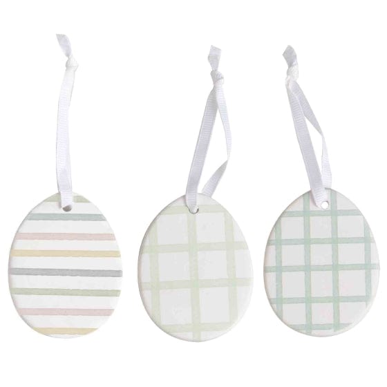 Hop Hop Hooray Ceramic Hanging Egg Decorations 6cm x 4.6cm 3pk