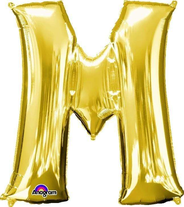 CI: Letter M Gold L16, 33cm, Self Sealing Foil Balloon , Air Fill only. Not meant for use with helium, will not float. Includes straw
