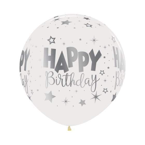 Sempertex 60cm METALink HAPPY Birthday Fantasy Crystal Clear Latex Balloons 390 3PK, Latex Balloon. 90% biodegradable within 2 years., 30cm when inflated, 3 Pack