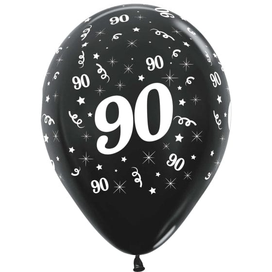 Sempertex 30cm Age 90 Metallic Black Latex Balloons, 25Pk