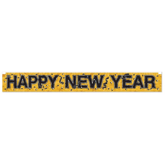 Metallic Happy New Year Fringe Gold Banner 19cm x 152.4cm Each