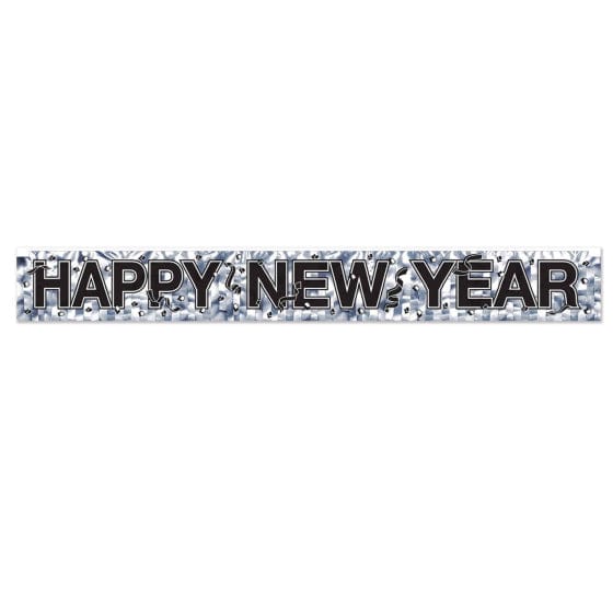 Metallic Happy New Year Fringe Silver Banner 19cm x 152.4cm Each