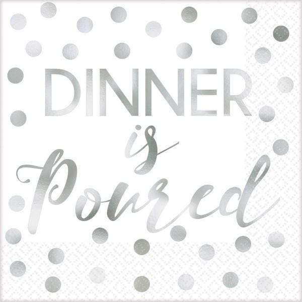 Dinner is Poured Beverage Napkins - Foil Hot-Stamped, 25cm x 25cm, Paper, 16 Pack