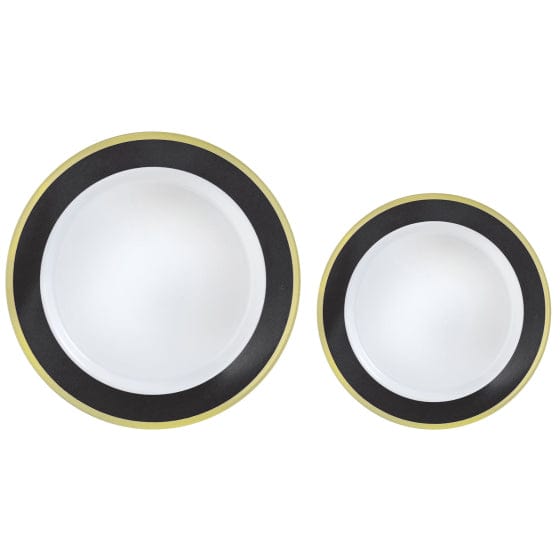 Premium Plastic Plates Hot Stamped with Border, Boxed Multipack 10 x 26cm & 10 x 19cm, Hand wash only, 20 per pack