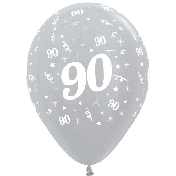 Sempertex 30cm Age 90 Satin Pearl Silver Latex Balloons, 25Pk